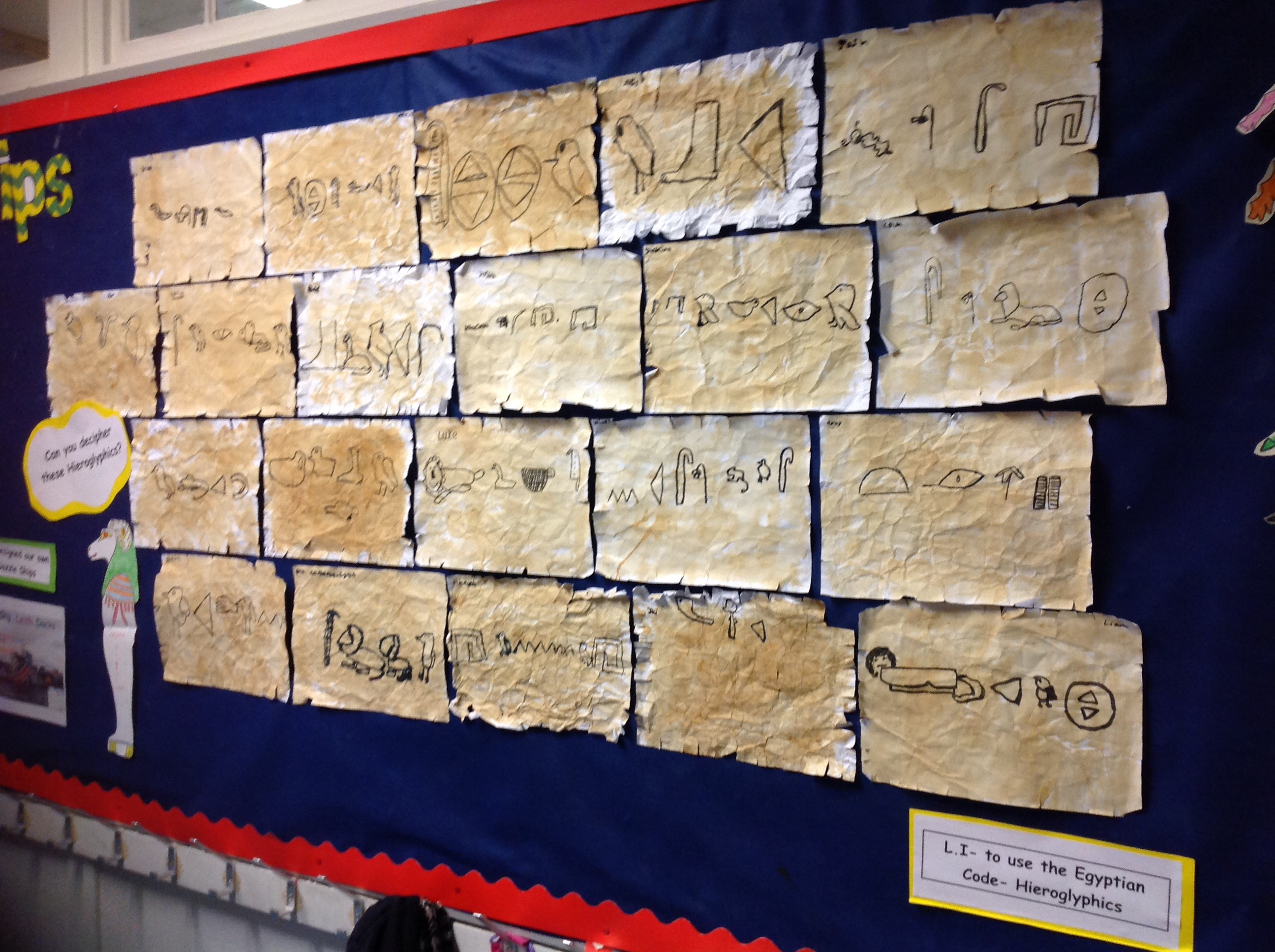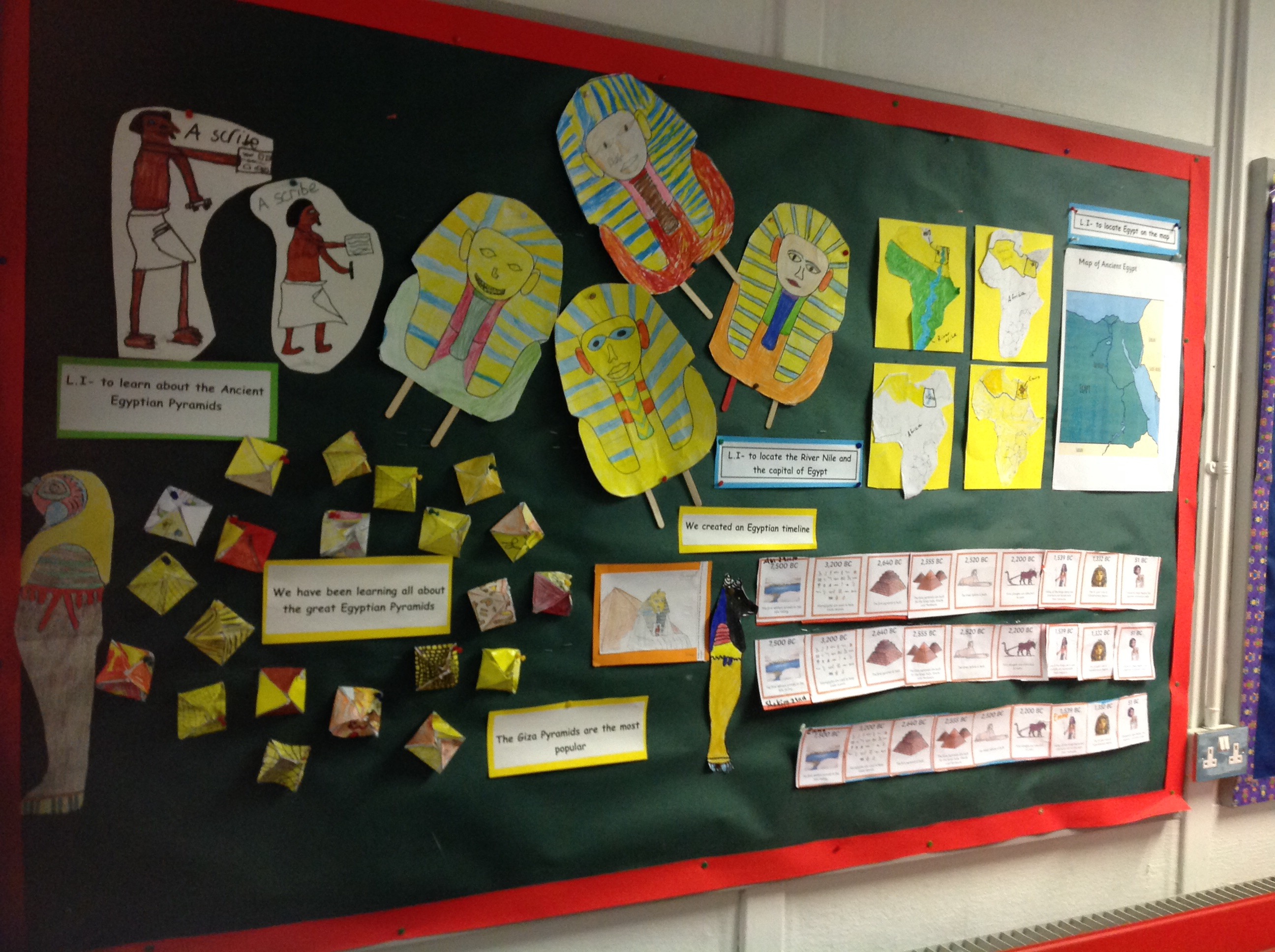 All of our Egyptian class work is displayed on our walls. Here are some pictures for you to look at!