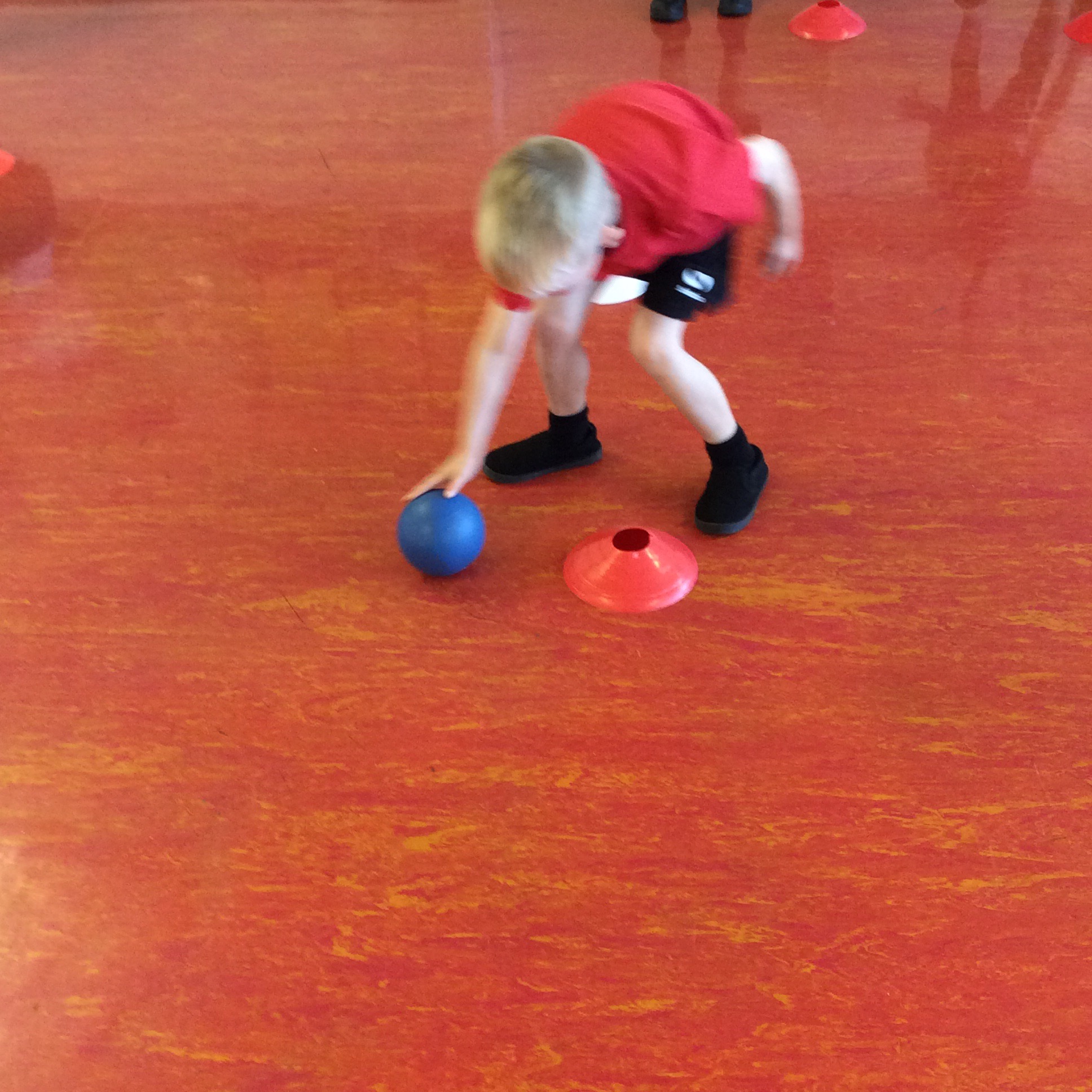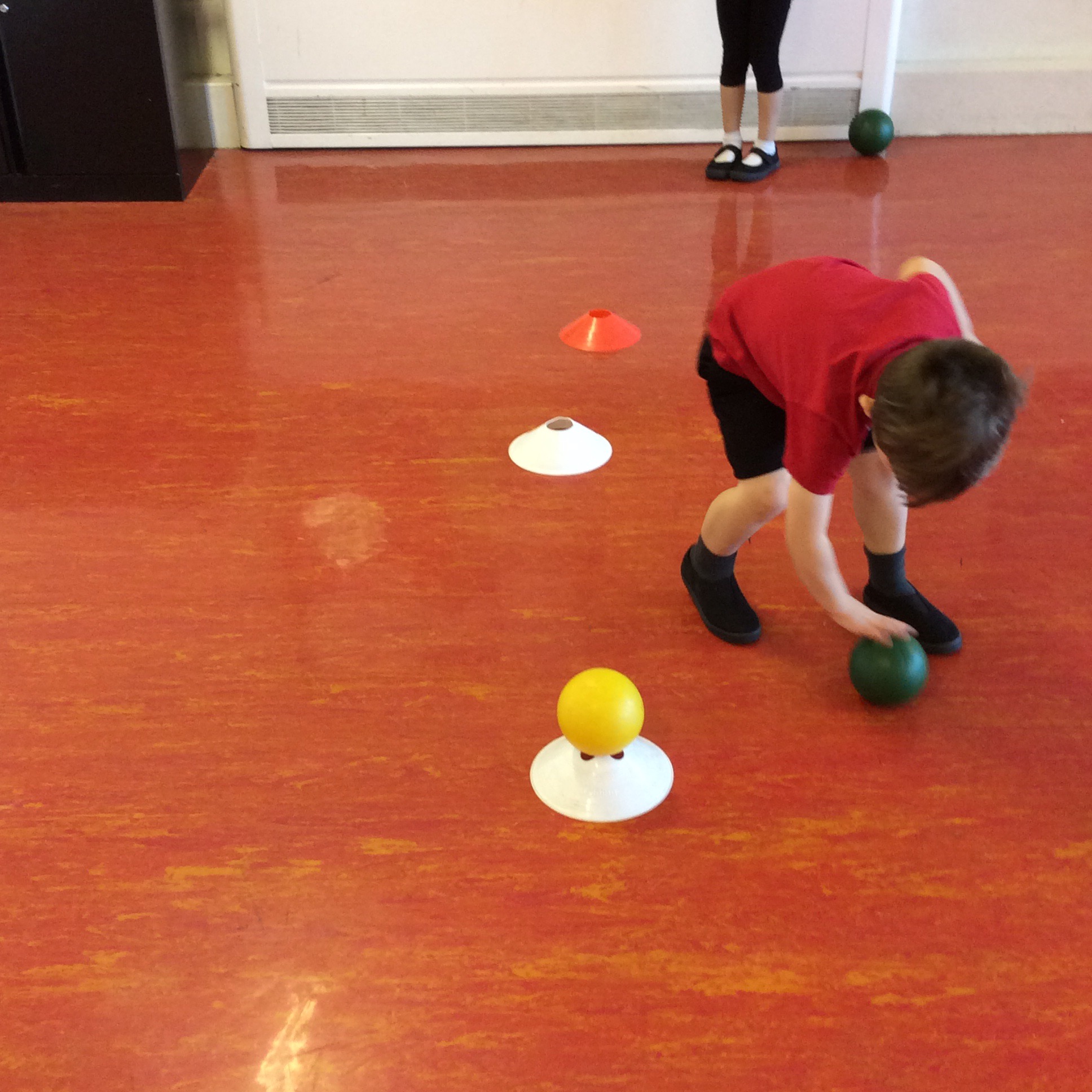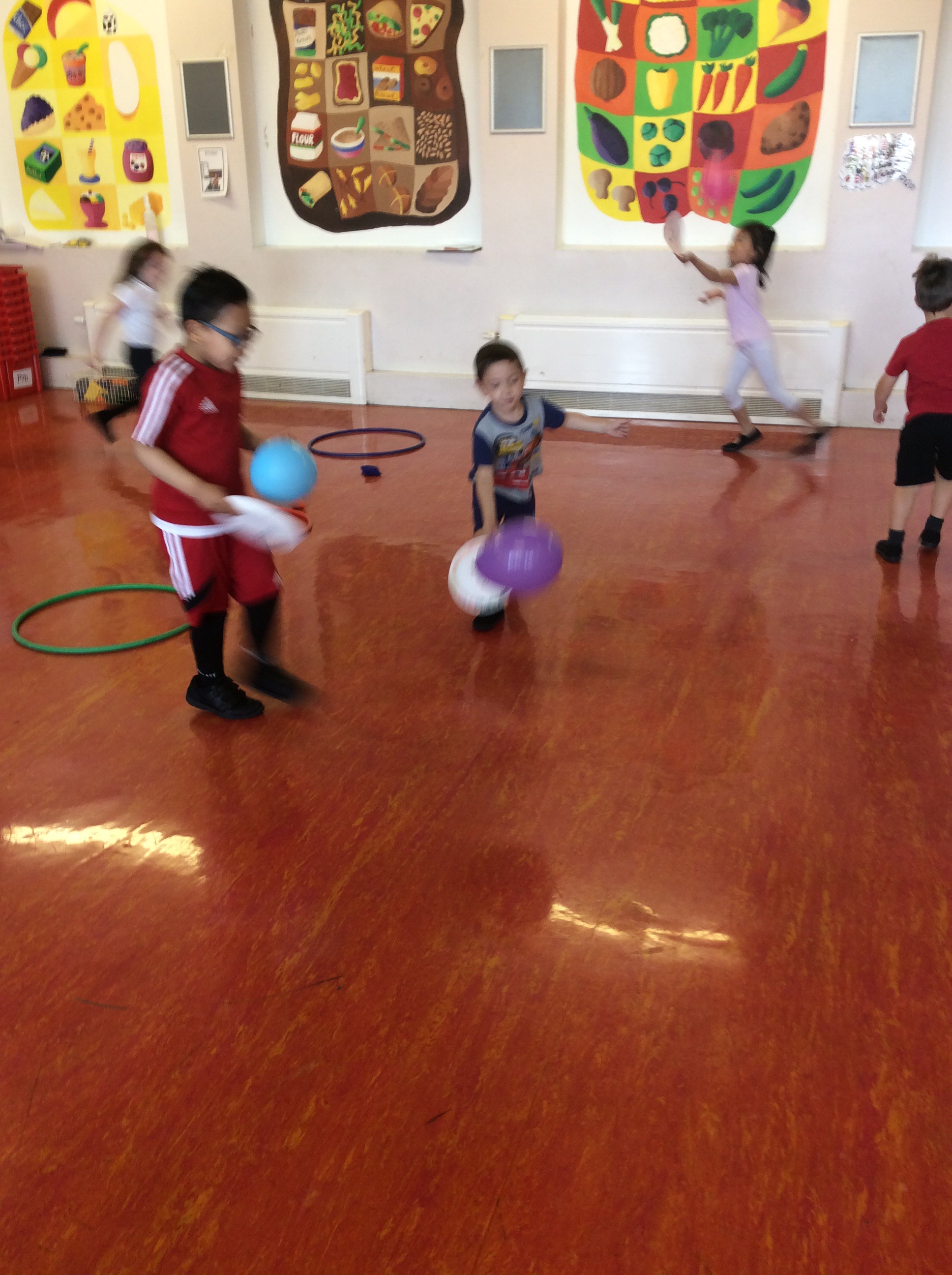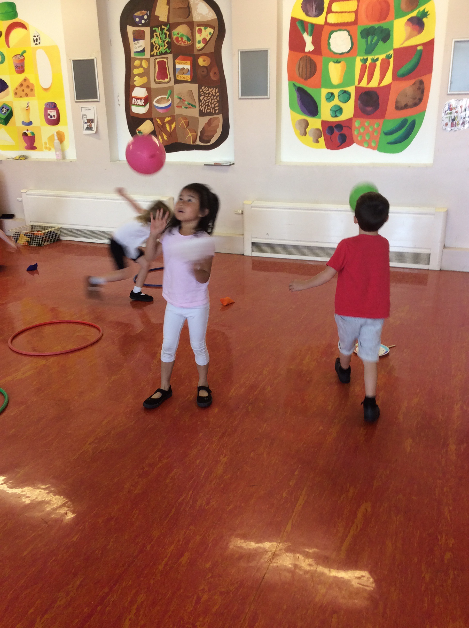 In gym we were working on catching and throwing a ball and we always warm up and cool down.