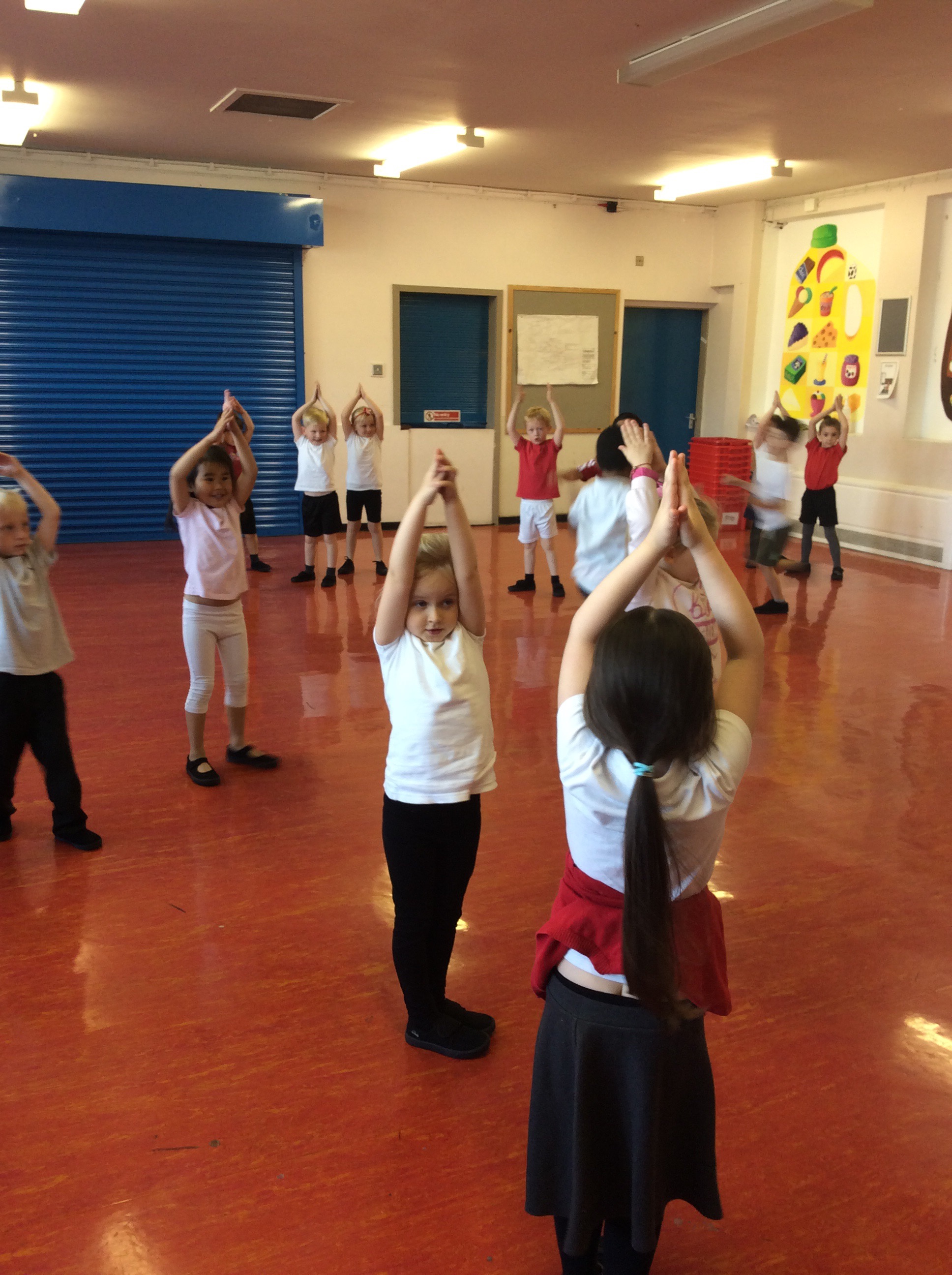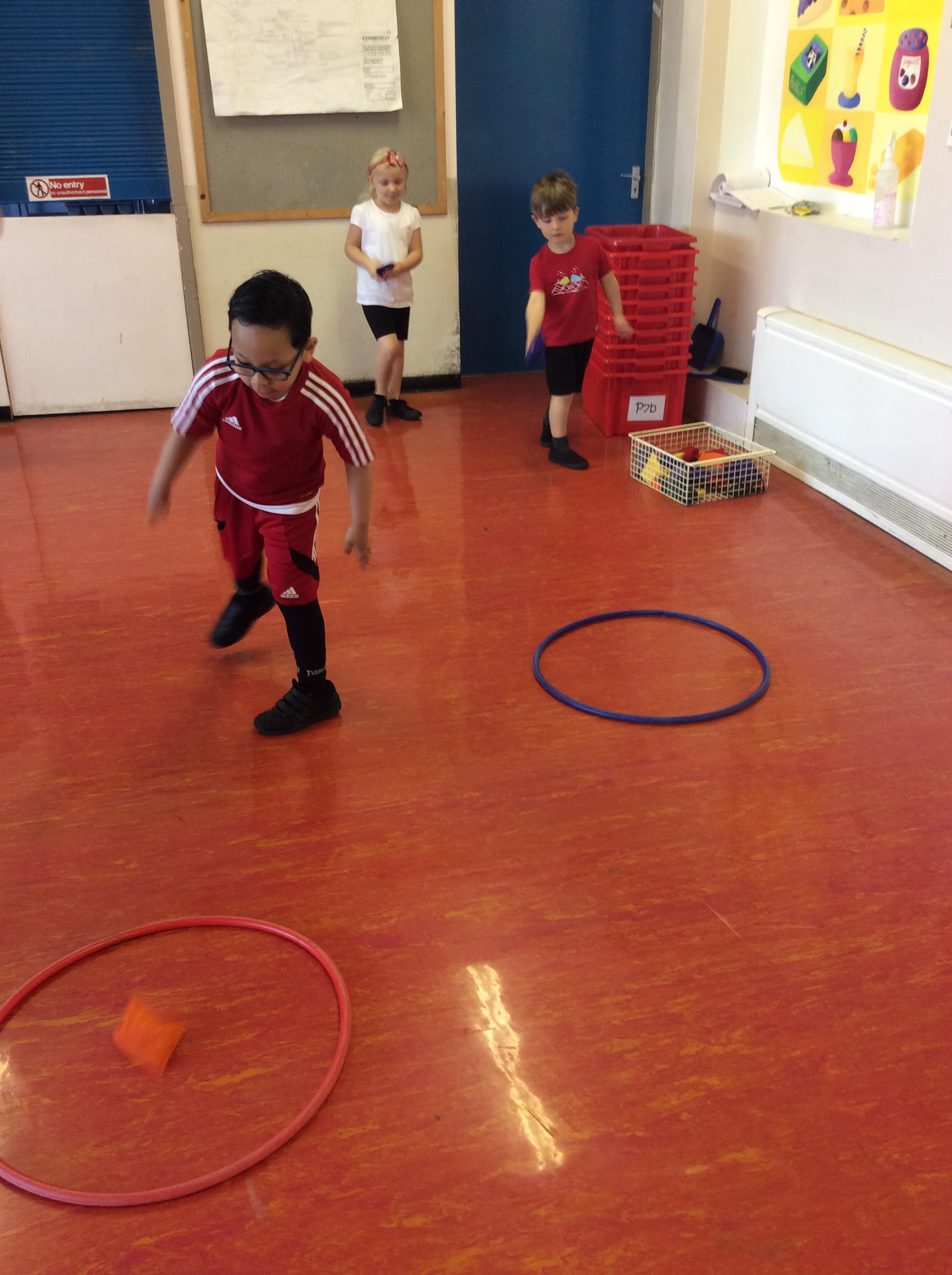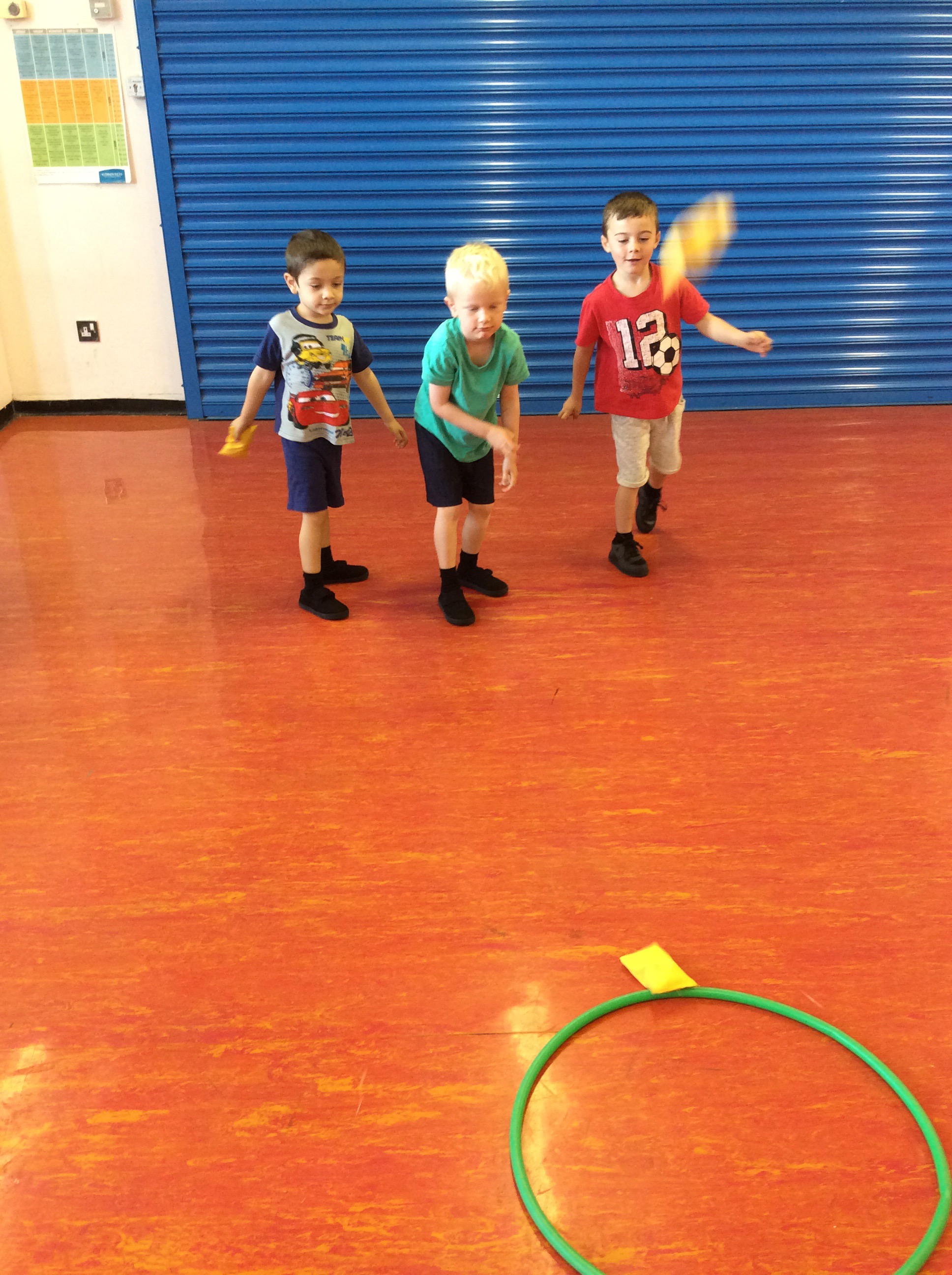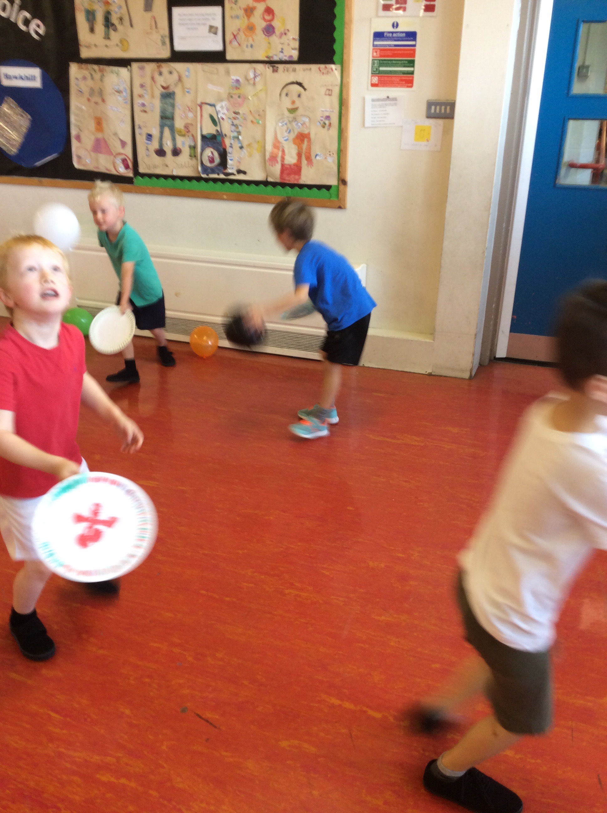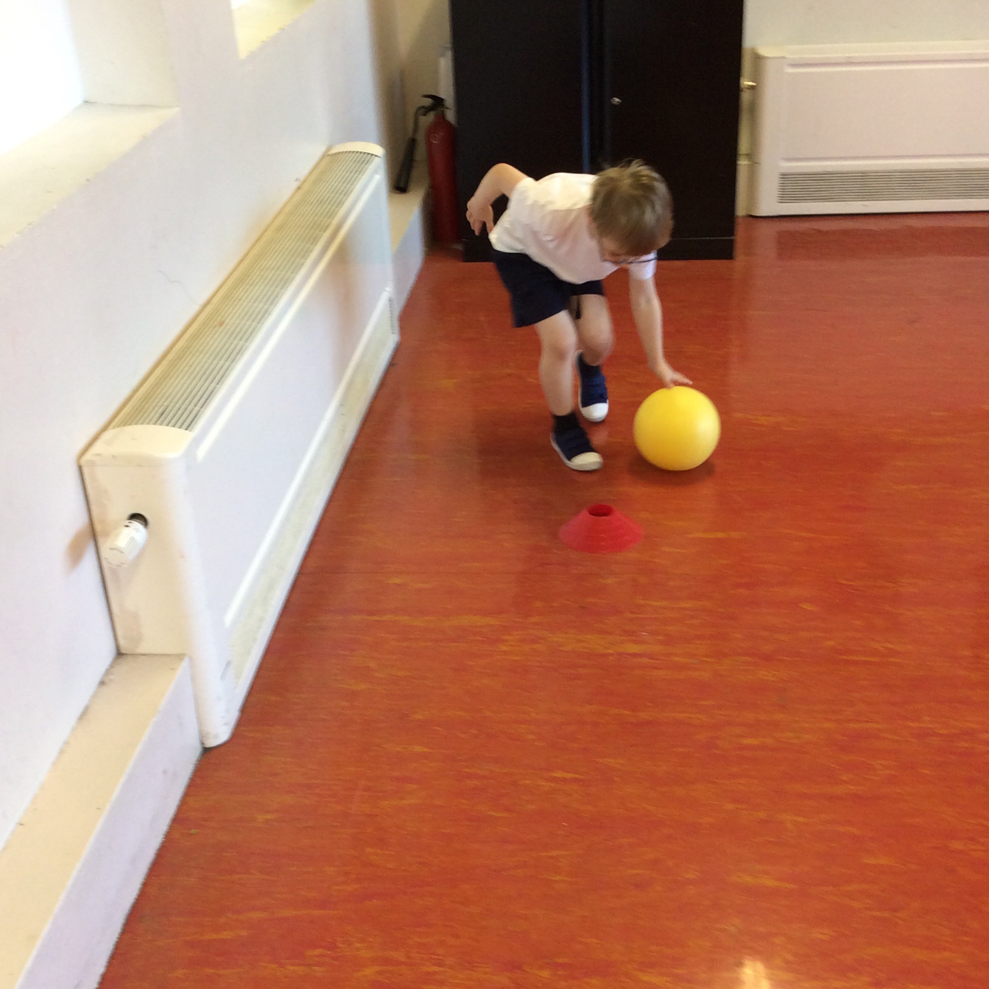 In gym we were working on catching and throwing a ball and we always warm up and cool down.