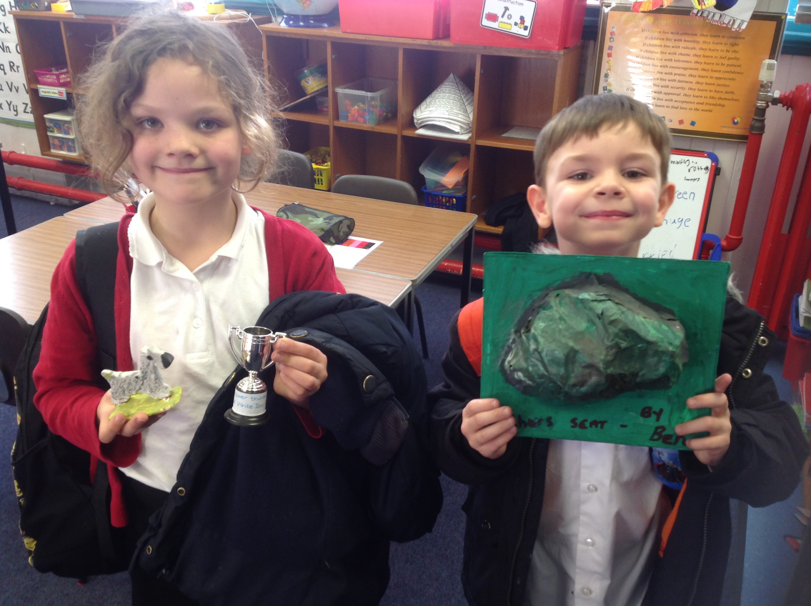 In Reading we got our new books and we did new worksheets. We wrote down some hard words to practise. We also read about mini beasts and answered questions. In Spelling we did new spelling words and did a test on last week’s words. We made the words out of plasticine.