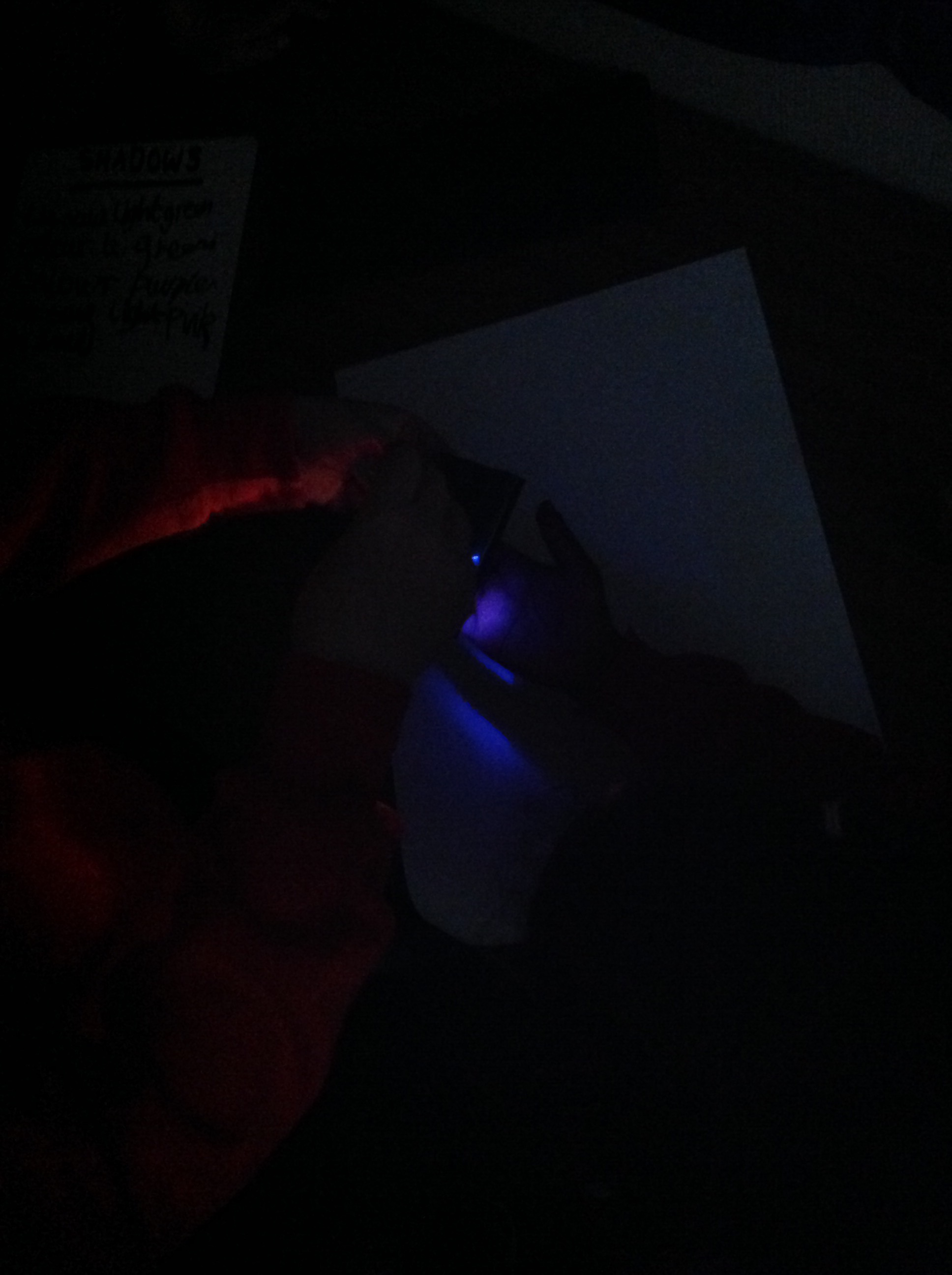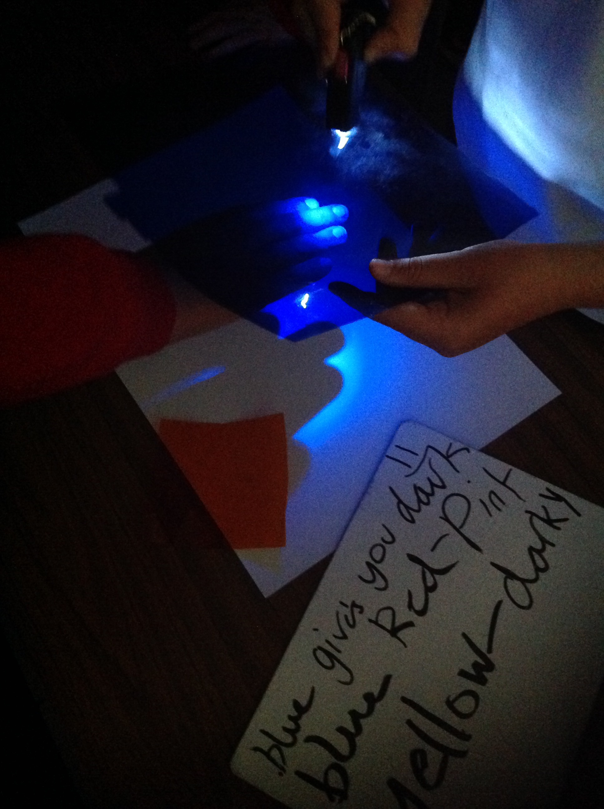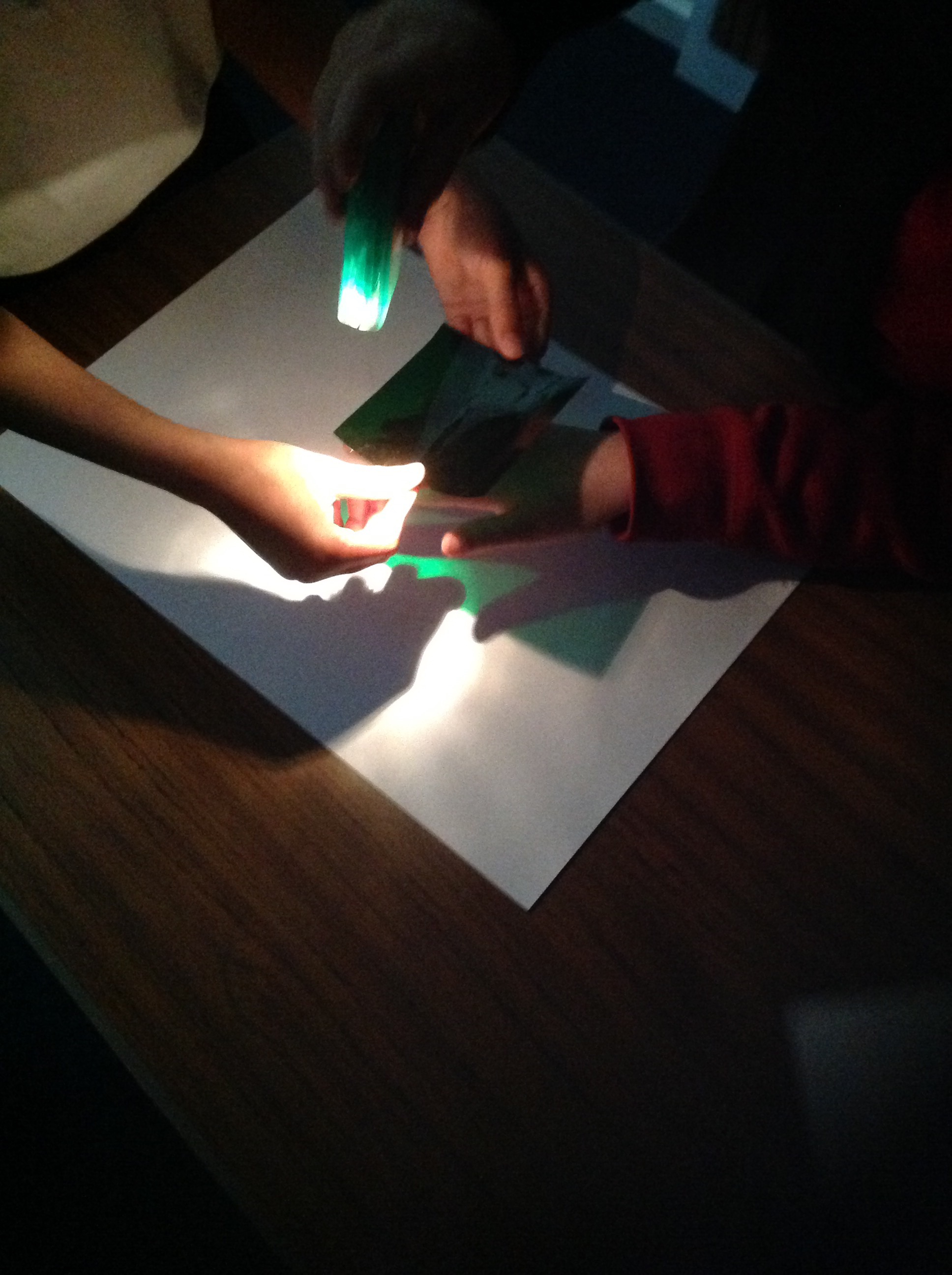 This term in topic we are looking at our world. We are doing a lot of science experiments to help us discover new things about light. In this experiment we were looking at our shadows through different coloured lights.