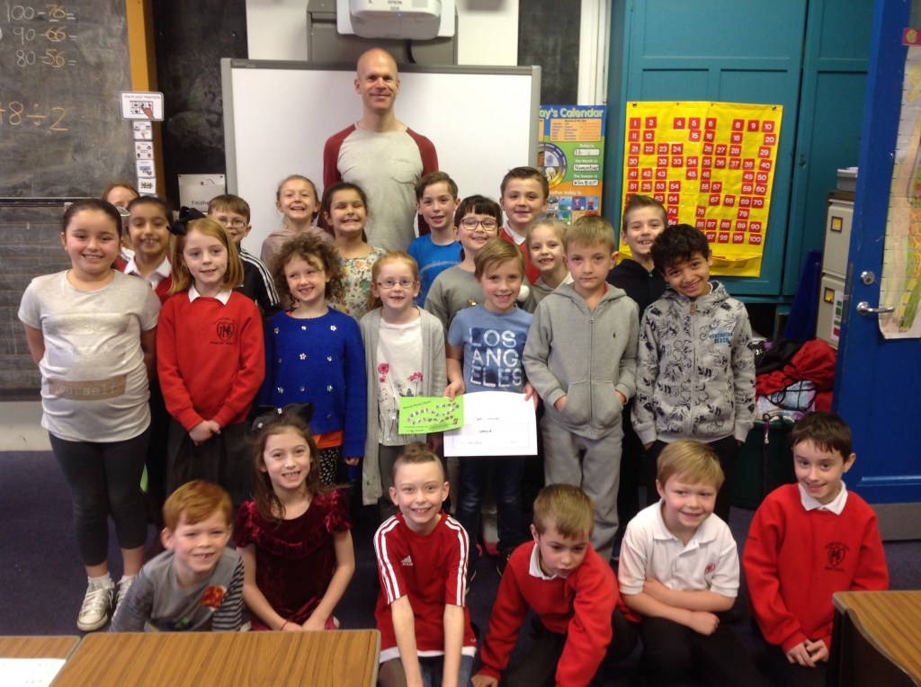 It’s Mr Thompson’s last day. We will miss him, so we made a card for him.